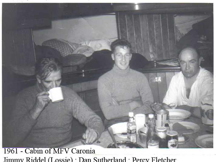 1961 – Caronia cabin. James Riddell (Lossie) Dan Sutherland, Percy Fletcher